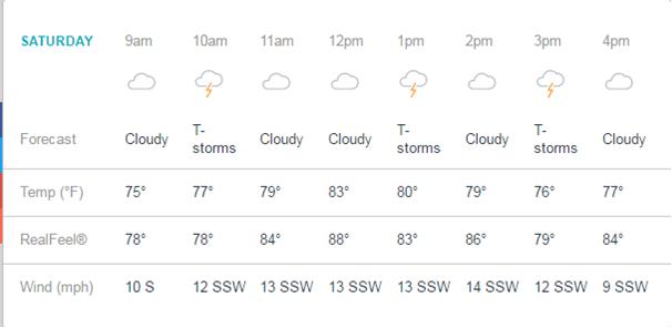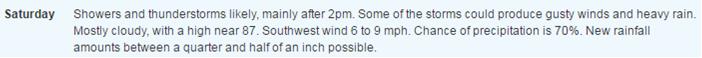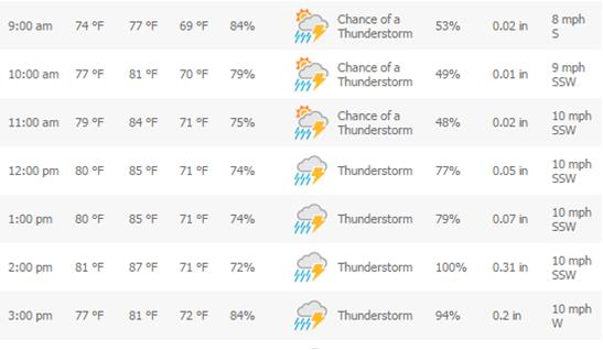 The weather looks like mostly thunderstorms with a chance for severe ones.