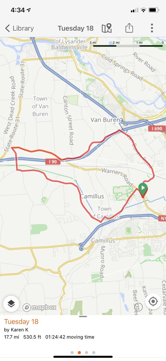 Tom’s group will be doing option hillier option 6. The PDF and GPS for both rides can be found at Tuesday Slow N’ Easy Rides – Onondaga Cycling Club