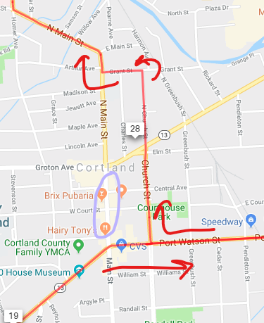 Note you will pass N. Main and Church on the way out do a loop and come back to Chruch from the east.